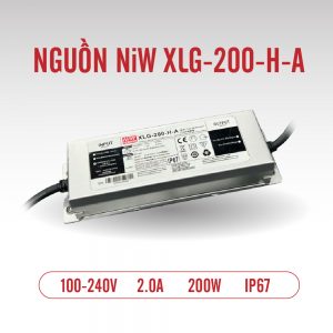 Nguồn Đèn LED NiW XLG-200 công suất định danh 200W, thiết kế dạng hộp chắc chắn, đạt chuẩn IP67 chống nước và bụi — lựa chọn phù hợp cho hệ chiếu sáng ngoài trời, sân thể thao, nhà xưởng và các ứng dụng chiếu sáng chuyên nghiệp cần độ bền cao.